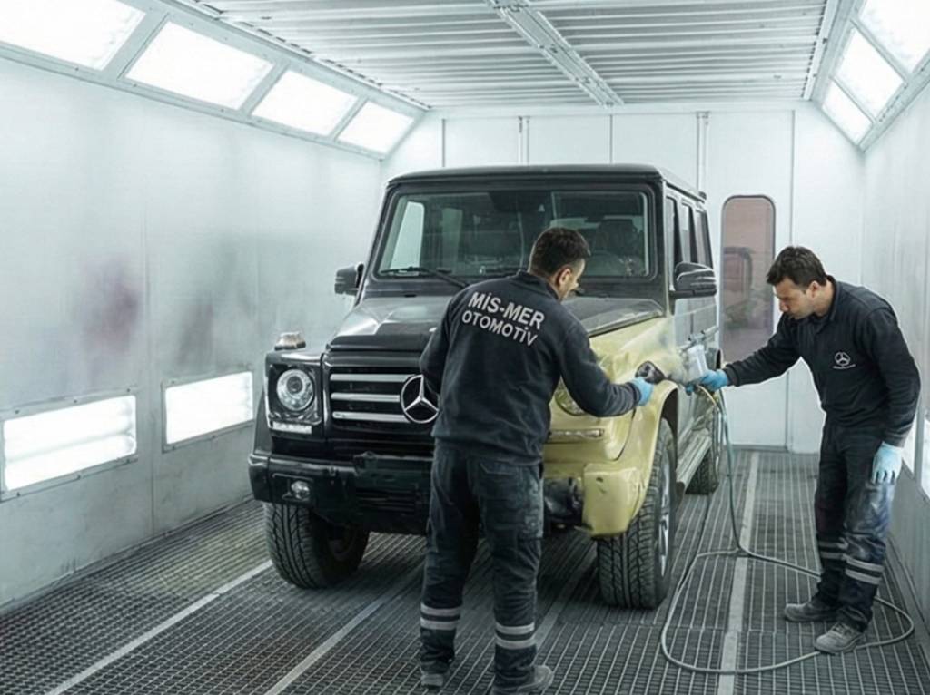 Boya işlemleri, Mercedes’in orijinal renk kodlarına birebir uygun, bilgisayarlı renk eşleştirme sistemleri ve fırın boya teknolojisi kullanılarak gerçekleştirilir. Böylece ton farkı oluşmaz, uzun ömürlü ve yüksek parlaklığa sahip bir yüzey kalitesi elde edilir. Küçük göçükler ve lokal deformasyonlar için boyasız göçük onarımı uygulanarak aracın orijinalliği ve ikinci el değeri korunur.
